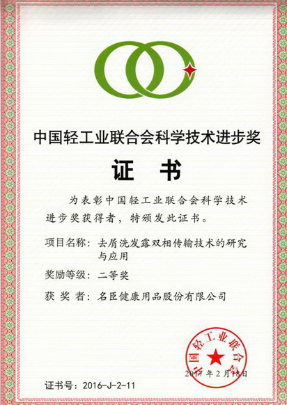 2017年2月公司获中国轻工业联合会科学技术进步奖二等奖